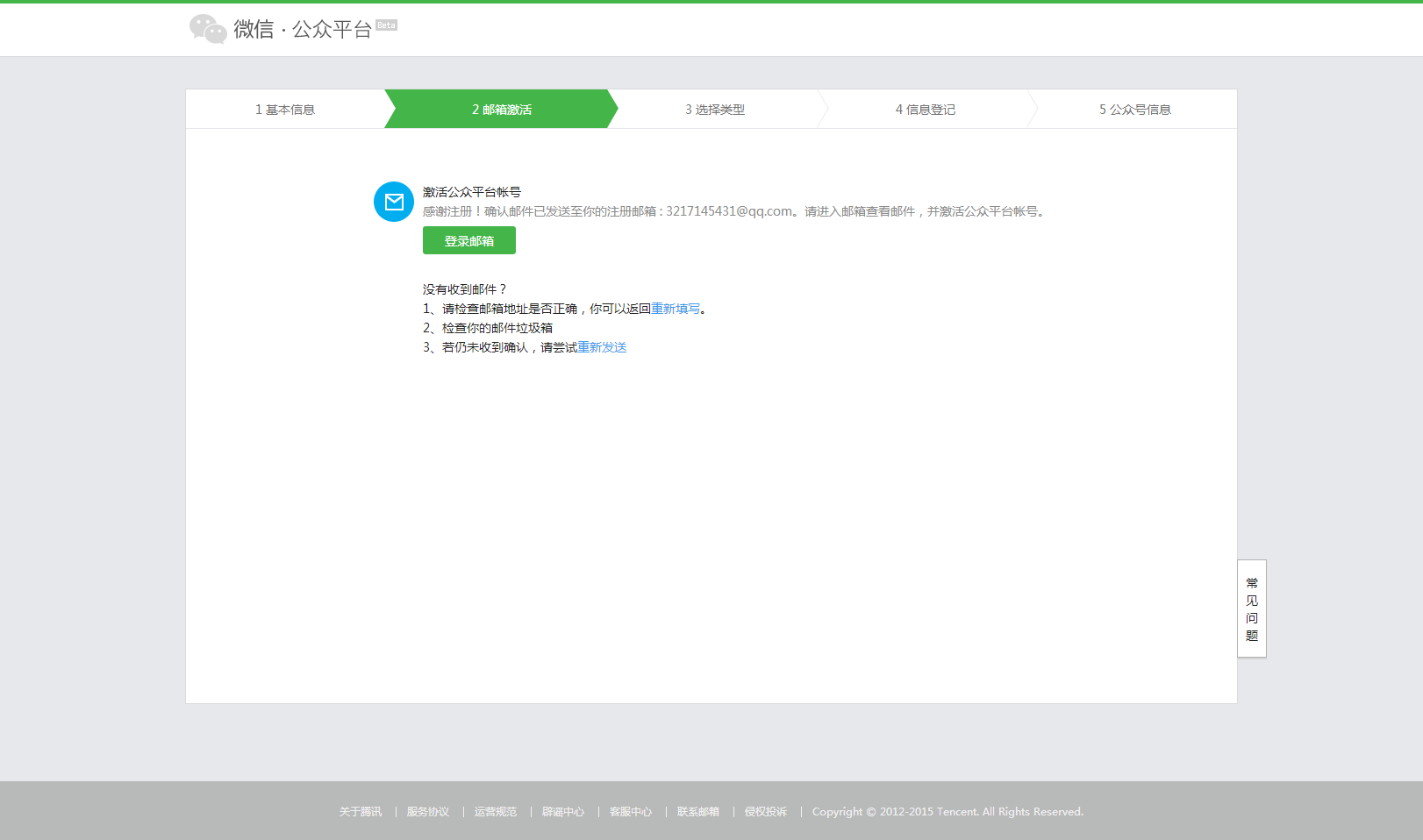 1、先申請一個(gè)騰訊QQ賬號,開通QQ郵箱,因?yàn)樯院笤谧晕⑿殴娰~號的時(shí)需要用該郵箱進(jìn)行注冊。