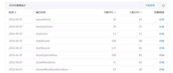 2. 網(wǎng)站在微信客戶(hù)端內(nèi)使用的 JSSDK 種類(lèi),以及調(diào)用次數(shù)和人數(shù)。