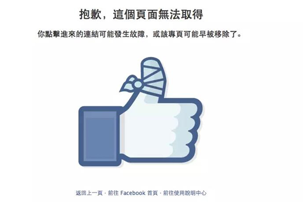 Facebook是美國的一個社交網(wǎng)絡(luò)服務(wù)網(wǎng)站,總部位于美國加利福尼亞州帕拉阿圖,創(chuàng)立于2004年2月4日,主要創(chuàng)始人馬克·扎克伯格。它的404頁面看起來似乎不怎么走心,這個設(shè)計來源于自家的「點贊」圖標(biāo)。