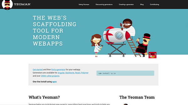 Yeoman剛剛上市的時間并不長,它是一個新興的工具,結(jié)合了 Yo、Grunt 和 Bower 等工具,組成了一個完整的工具集合,提供各種Web應(yīng)用開發(fā)中所需的實用功能。Yeoman最大優(yōu)勢在于它整合了各種流行的實用工具,提供了一站式的解決方案,使得開發(fā)人員可以專注于應(yīng)用本身的實現(xiàn),而不用在搭建應(yīng)用的基礎(chǔ)結(jié)構(gòu)、進(jìn)行任務(wù)構(gòu)建和其他輔助任務(wù)上花費過多的時間和精力。