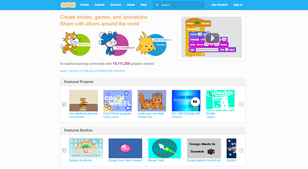 Scrath擁有超過40個的Lac項目,是一個非常棒的學習社區(qū)。你可以創(chuàng)建故事,游戲和動畫并分享給世界各地的朋友和家人。加入Scratch,弄一個你自己的項目吧。