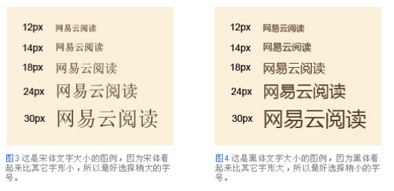 如圖:即便文字的大小是一樣的,由于字體不同,視覺(jué)上看起來(lái)字的大小也是有區(qū)別的,而且選擇文字的時(shí)候,需要考慮整體頁(yè)面的美觀度,可讀性。
