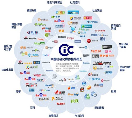 以下是中國(guó)社會(huì)化媒體&溝通的大致格局: