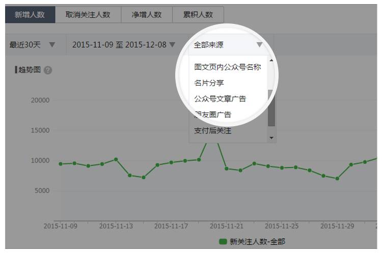 2、細(xì)化新增訂閱用戶來源,增加圖文頁內(nèi)公眾號(hào)名稱、掃描二維碼、公眾號(hào)文章廣告、朋友圈廣告、支付后關(guān)注來源。