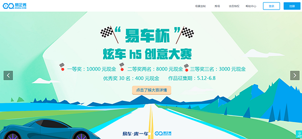 易企秀就是一款H5頁面制作工具。它有多種動態(tài)模板,能實現(xiàn)文本和圖片的滑動、隱現(xiàn)、放大縮小等動態(tài)效,并且操作簡單,用戶無需掌握復(fù)雜的編程技術(shù),就能簡單、輕松制作基于HTML5的精美手機幻燈片頁面。同時,易企秀與主流社會化媒體打通,讓用戶通過自身的社會化媒體賬號就能進行傳播,展示業(yè)務(wù),收集潛在客戶,使用的地方包括:企業(yè)宣傳,產(chǎn)品介紹,活動促銷,預(yù)約報名等。