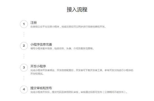 3、開發(fā)小程序:完成小程序開發(fā)者綁定、開發(fā)信息配置后,開發(fā)者可下載開發(fā)者工具、參考開發(fā)文檔進行小程序的開發(fā)和調試。