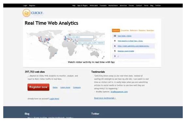 Google Analytics是一個(gè)使用非常廣泛的訪問(wèn)統(tǒng)計(jì)工具,目前它推出了一系列的新的功能,可以提供實(shí)時(shí)報(bào)告。你可以看到你的網(wǎng)站中目前在線的訪客數(shù)量,了解他們觀看了哪些網(wǎng)頁(yè)、他們通過(guò)哪個(gè)網(wǎng)站鏈接到你的網(wǎng)站、來(lái)自哪個(gè)國(guó)家......。