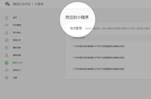 公眾號(hào)后臺(tái)新增附近的小程序功能,申請(qǐng)開通后支持添加地點(diǎn)。