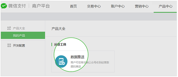 1. 登錄商戶(hù)平臺(tái),在【產(chǎn)品中心-我的產(chǎn)品-數(shù)據(jù)推送】點(diǎn)擊“申請(qǐng)開(kāi)通”