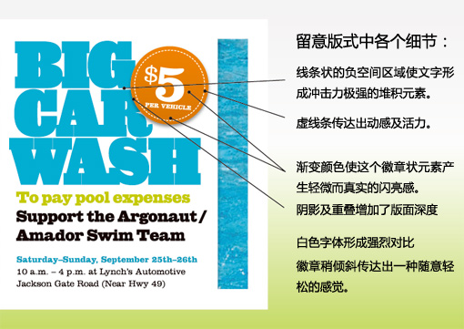 沒有人會對它視而不見:這張洗車券是一般門票尺寸的兩倍之大,設(shè)計起來也很容易,從視覺上也非常能吸引有興趣的消費者。大圖片及大標(biāo)題使這張洗車券產(chǎn)生一張海報的視覺效果,效果當(dāng)然不錯。