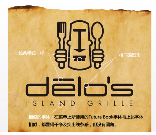 我們很喜歡DELO小島燒烤店的菜單,因為在我們的眼中它顯得很酷,它只是由黑白線條(沒有灰度)構(gòu)成,這些線條構(gòu)成了餐廳的標(biāo)志及名稱。既經(jīng)典又實惠的設(shè)計!