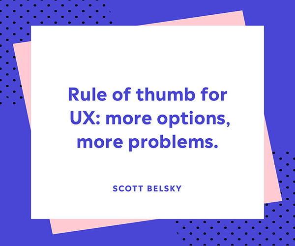 若無法真正理解人與設(shè)備之間的關(guān)系,那么在設(shè)計(jì)時(shí),總會(huì)不自主的認(rèn)為用戶和設(shè)計(jì)者一樣了解產(chǎn)品,或認(rèn)為用戶的「主觀能動(dòng)性」足夠強(qiáng),繼而為設(shè)備和產(chǎn)品增加更多的功能,更多的選項(xiàng),然而事實(shí)證明這個(gè)觀念是錯(cuò)的。更多的選擇和更多的選項(xiàng)往往會(huì)帶來更大的認(rèn)知負(fù)荷,這一點(diǎn)是違反普通人的認(rèn)知習(xí)慣的,人們面對(duì)更多選擇時(shí),很難作出決定。所以給用戶少一點(diǎn)選擇,降低認(rèn)知負(fù)荷,提高任務(wù)的完成度,這樣整個(gè)用戶歷程也更順暢。
