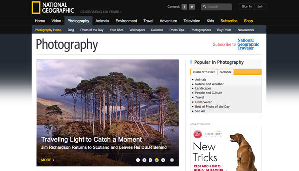 如果一張漂亮的圖片對(duì)你的項(xiàng)目有幫助,別僅限于從中汲取靈感,直接使用它。大膽設(shè)計(jì),聚焦于這張漂亮圖片。另一方面,如果你沒有合適的圖片,搜羅全世界的照片來尋找靈感。當(dāng)你感到艱難、設(shè)計(jì)卡住時(shí),National Geographic、Jill Greenberg和Levon Biss,就是尋求幫助的絕佳地方(而且這些網(wǎng)站圍繞圖片的設(shè)計(jì)都做得不錯(cuò))一張焦點(diǎn)圖一張圖片。