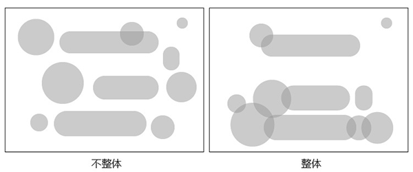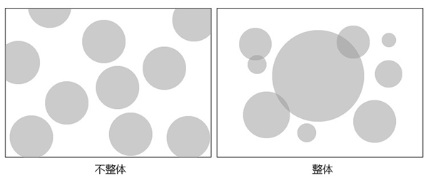 有些設(shè)計師在做設(shè)計時喜歡將所有空白都填上元素,這種做法不僅會造成畫面擁擠不透氣,還會使畫面看起來很散。若版面中元素東一個西一個,像一盤散沙一樣,那就回顯得非常的不整體,由于畫面的視覺不集中,各元素之間也就很難關(guān)聯(lián)中起來。所以,一定要各個移動元素集中排放,除此之外,還可以在元素之間增加一個元素將它們貫穿起來。