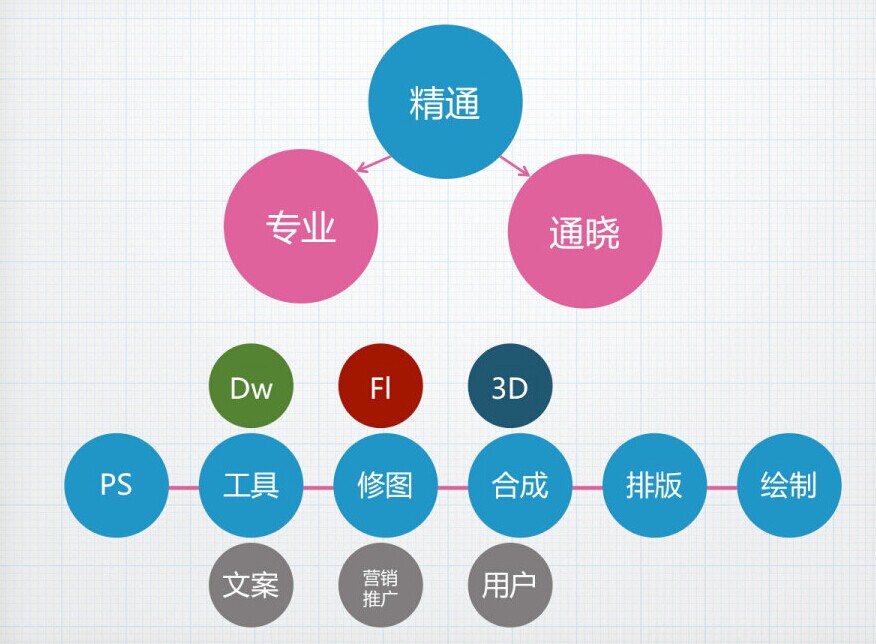 不要問自己應(yīng)該學(xué)哪些軟件,也不要嘆息學(xué)校中學(xué)的雜糅無用,只會皮毛,這是常態(tài),學(xué)校中的專注選擇并非職業(yè)選擇,同一專注方向,也會有很多不同的職業(yè),所以在學(xué)校,老師們只會把所有這個(gè)方向的東西,都讓你們略知一二,領(lǐng)你們進(jìn)這個(gè)門,而你們?nèi)绾尉駬?,如何取舍,那因人而異,所需要學(xué)的軟件專精也各不相同。問自己,自己做什么,得到答案后再去了解對應(yīng)的職業(yè),對應(yīng)的需求,再告訴自己該學(xué)哪些軟件。