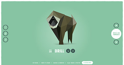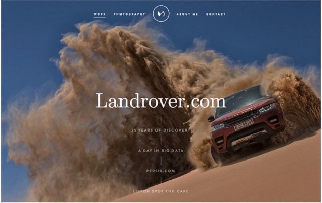 該圖的色彩對(duì)比是棕褐色沙塵與深藍(lán)色天空的強(qiáng)烈對(duì)比,能看到色輪,揚(yáng)起的黃褐色沙塵創(chuàng)造了一種視覺(jué)運(yùn)動(dòng)路線(xiàn),將你的目光指引到紅色的車(chē)身方向(也將你的視線(xiàn)帶往了白色文本所在位置)。這種網(wǎng)頁(yè)可視化設(shè)計(jì)的色彩搭配在審美上達(dá)到了一種平衡。