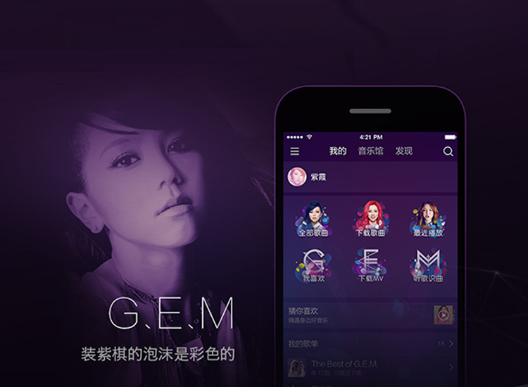 鄧紫棋:肺活量極大,唱歌超好聽,眾男生心中的女神鄧紫棋,名字里有“紫”字的美女十分適合夢(mèng)幻的紫色調(diào)。設(shè)計(jì)靈感來自GEM的成名歌曲《泡沫》,在彩色泡沫包圍下,幻化為美麗的人魚公主。圖標(biāo)設(shè)計(jì)主要選用了GEM經(jīng)典的造型,當(dāng)然還有粉絲們熟悉的“金魚”。