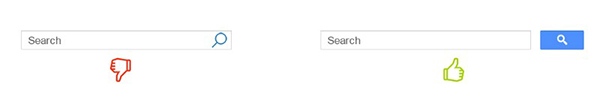 站內(nèi)搜索框的設計其實并不簡單,并非是放一個長條方框就可以的,還需要為搜索框配上一個有指向意義的按鈕,可以是文字也可以是圖片,讓用戶有意認的去點擊,這樣就可以對開始搜索這個操作有一個很直觀的感受。