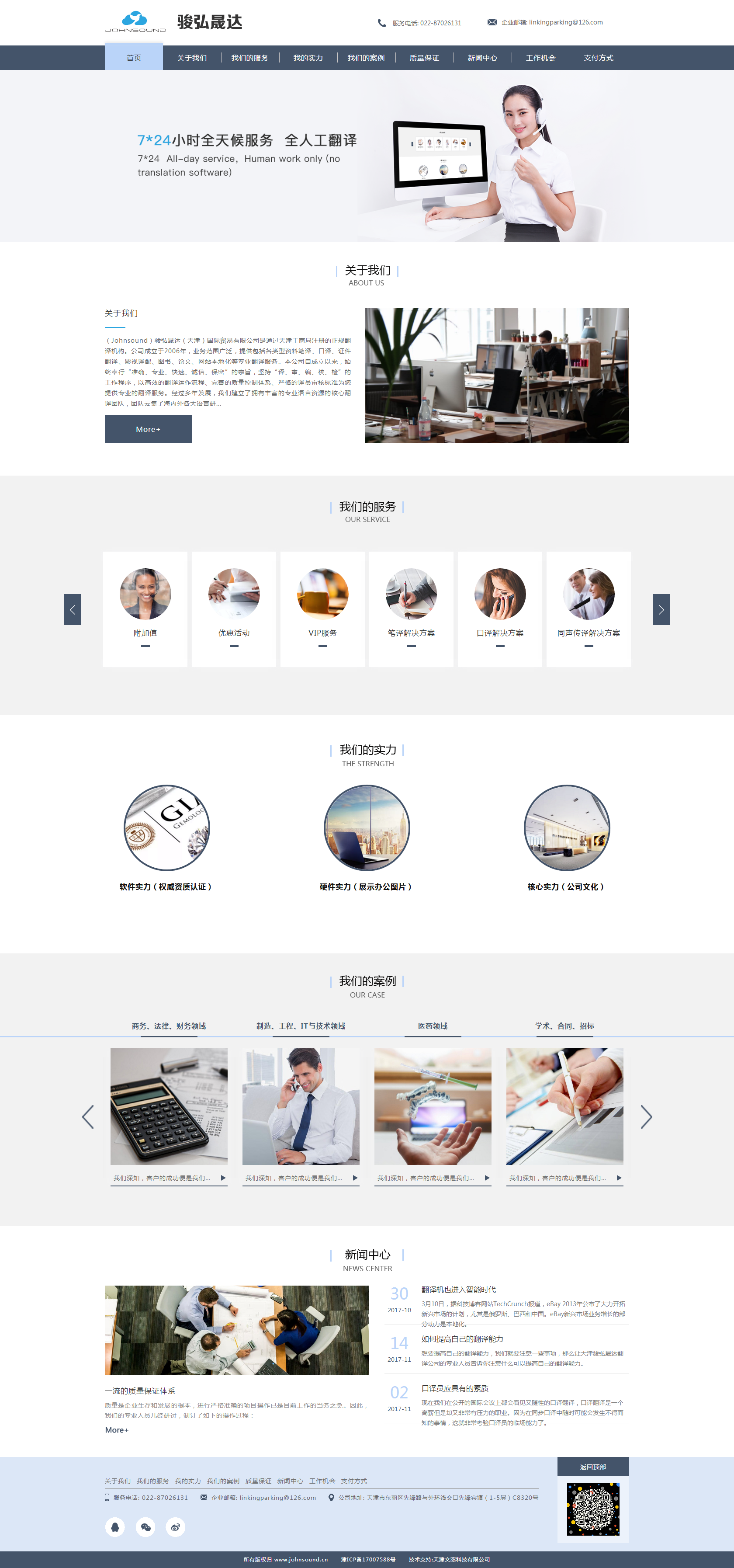 (Johnsound)駿弘晟達(天津)國際貿(mào)易有限公司是通過天津工商局注冊的正規(guī)翻譯機構。公司成立于2006年,業(yè)務范圍廣泛,提供包括各類型資料筆譯、口譯、證件翻譯、影視譯配、圖書、論文、網(wǎng)站本地化等專注翻譯服務。本公司自成立以來,始終奉行“準確、專注、快速、誠信、保密”的宗旨,堅持“譯、審、編、校、檢”的工作程序,以高效的翻譯運作流程、完善的質量控制體系、嚴格的譯員審核標準為您提供專注的翻譯服務。