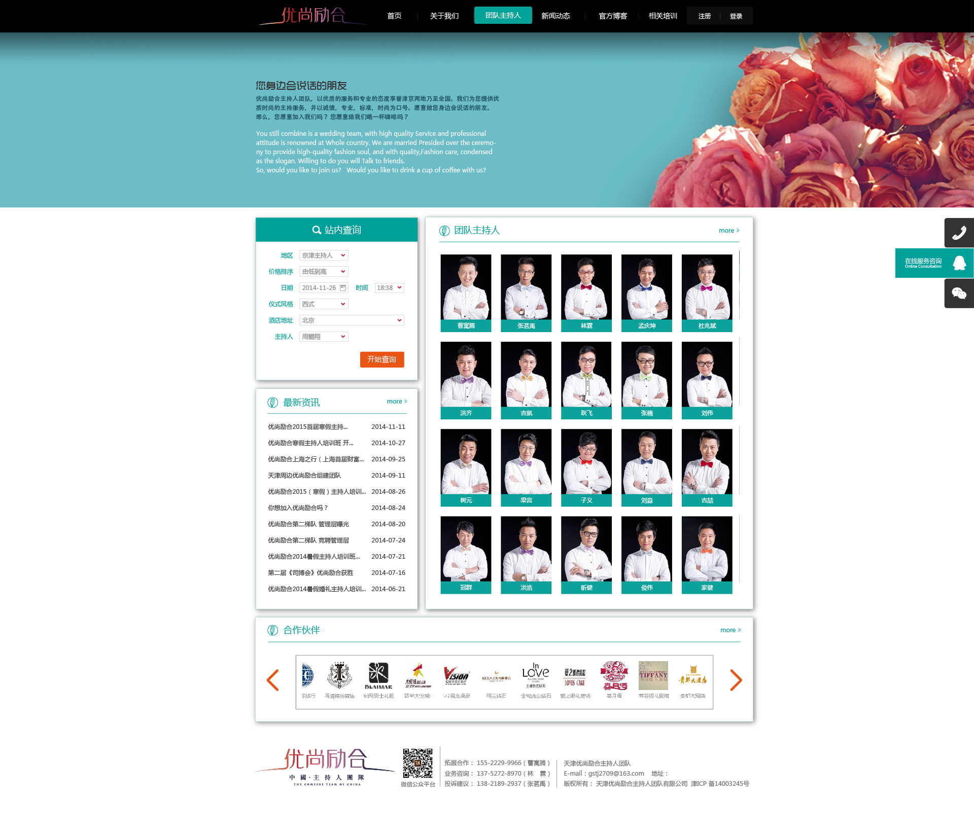 優(yōu)尚勵合主持人團隊(簡稱優(yōu)尚團隊),隸屬于天津優(yōu)尚勵合文化發(fā)展有限公司。受中國婚慶產(chǎn)業(yè)聯(lián)合集團、天津市婚慶服務(wù)行業(yè)協(xié)會的指導(dǎo)下,在潘樹輝、賈金奎、張宏達三位國內(nèi)大師的精心指導(dǎo)下,由曹寓騰、張茗禹兩位國內(nèi)資深婚禮主持人共同創(chuàng)辦。團隊本著鼓勵個性、支持原創(chuàng)、繼承傳統(tǒng)、開拓創(chuàng)新的發(fā)展方向,旨在全心全意為全國市場培養(yǎng)和提供優(yōu)秀的主持以及策劃服務(wù)。