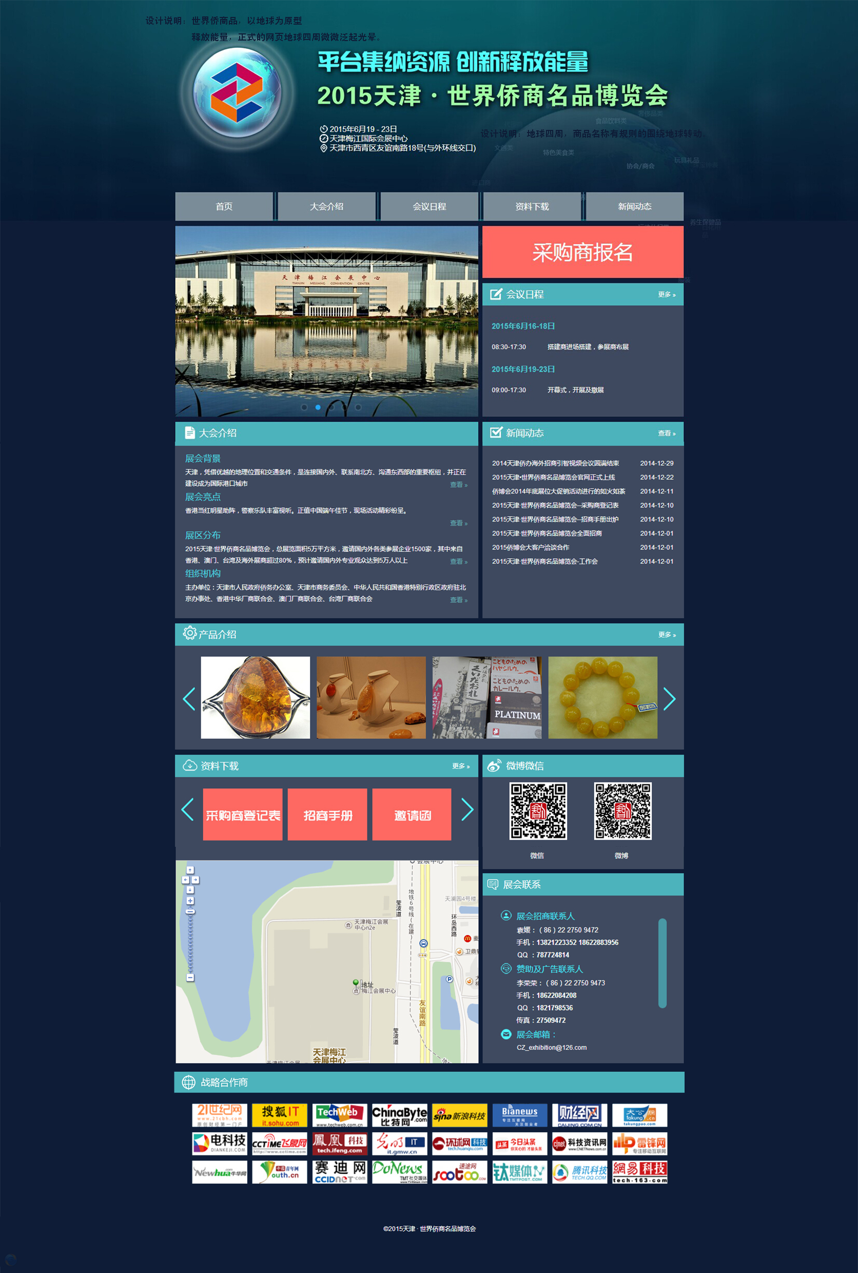 天津文率科技為2015天津·世界僑商名品博覽會(huì)制作其官方網(wǎng)站建設(shè),2014年底,世界僑商名品博覽會(huì)官網(wǎng)正式上線。此次大會(huì)官網(wǎng)(qbh.tjbhcz.com)建設(shè)采用的是最新的php mysql技術(shù),包括美工團(tuán)隊(duì)在頁(yè)面美化設(shè)計(jì)、css3動(dòng)態(tài)功能效果實(shí)現(xiàn)、智能人性化瀏覽、一鍵下載資料、有效結(jié)合新媒體運(yùn)營(yíng)方式等諸多方面屬于目前建站領(lǐng)域比較先進(jìn)化,經(jīng)過近1個(gè)月的封閉開發(fā)、數(shù)十次的反復(fù)測(cè)試終于如期展示在大眾網(wǎng)民面前。該展會(huì)面積5萬(wàn)平方米,邀請(qǐng)國(guó)內(nèi)外各類參展企業(yè)1500家,其中來自香港、澳門、臺(tái)灣的涉僑企業(yè)與當(dāng)?shù)貎S胞,以及海外展商超過80%,預(yù)計(jì)邀請(qǐng)國(guó)內(nèi)外專注觀眾達(dá)到5萬(wàn)人以上。