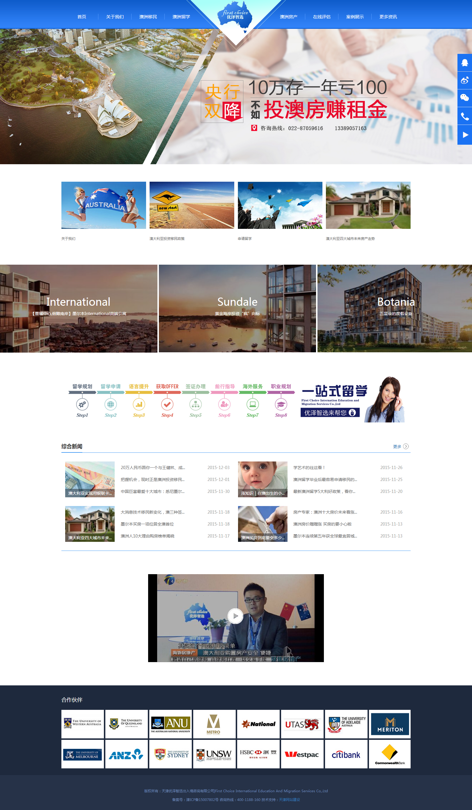 天津優(yōu)澤智選出入境咨詢(xún)有限公司是天津市首家由澳籍華人主理的專(zhuān)注于澳洲不動(dòng)產(chǎn)、留學(xué)及移民規(guī)劃咨詢(xún)的專(zhuān)注服務(wù)機(jī)構(gòu)。公司始終秉持著“以客戶(hù)為本”的服務(wù)宗旨,不斷開(kāi)拓創(chuàng)新更廣泛的服務(wù)領(lǐng)域。目前,優(yōu)澤智選已經(jīng)與海外60多家優(yōu)質(zhì)房地產(chǎn)開(kāi)發(fā)商、39所大學(xué)以及眾多知名學(xué)院、高中建立了長(zhǎng)期戰(zhàn)略聯(lián)盟,并與海外各大銀行、知名律師行建立了緊密合作關(guān)系。無(wú)論您是為了尋求完善的醫(yī)療服務(wù)、良好的子女教育和無(wú)憂(yōu)的晚年生活,還是優(yōu)美的居住環(huán)境、便利的出境條件和廣闊的投資領(lǐng)域,我們均能滿(mǎn)足您的需求,為尊貴的您提供專(zhuān)注的海外房產(chǎn)、移民留學(xué)等一站式專(zhuān)注服務(wù),確保您“移路暢通”。